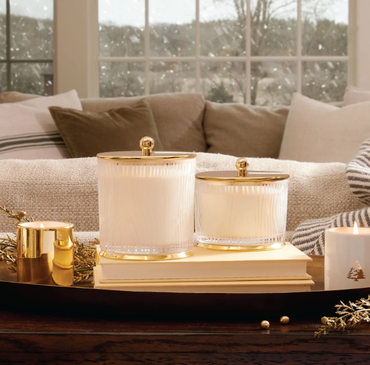 Thymes Frasier Fir Frosted Wood Grain Candle