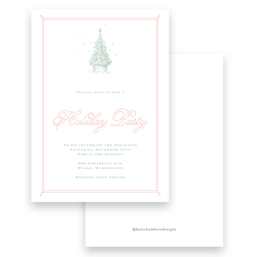 Simple Christmas Tree with Border Holiday Invitation