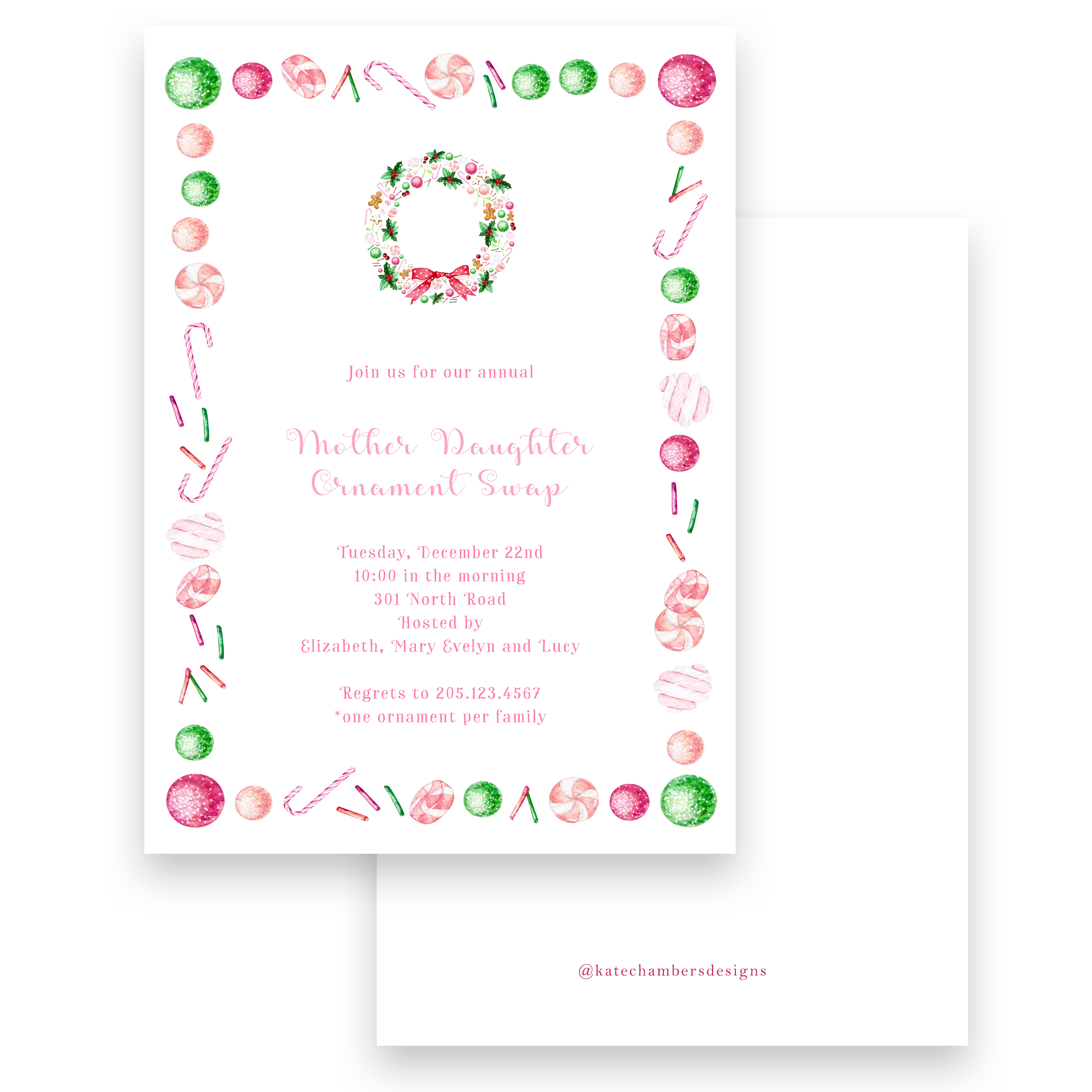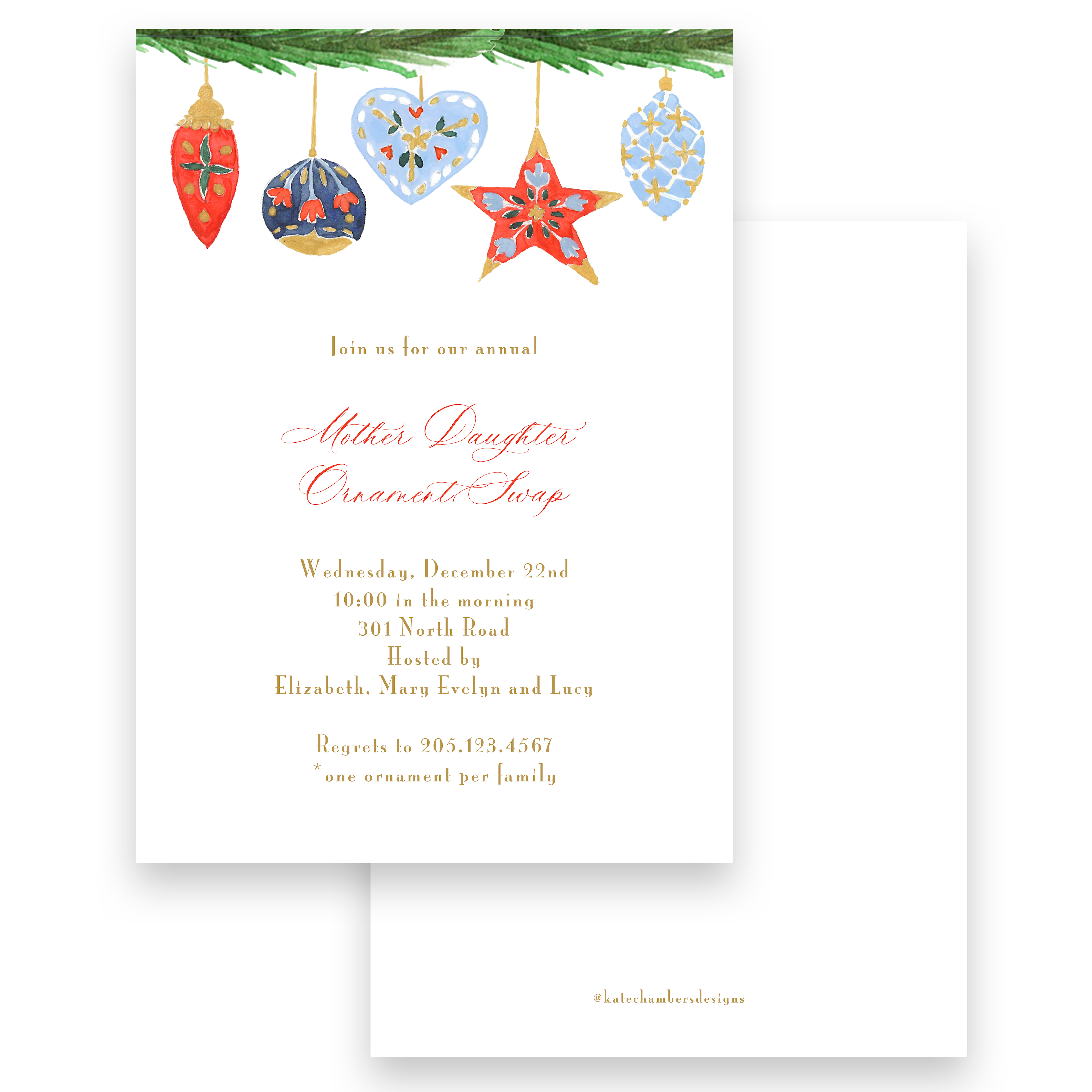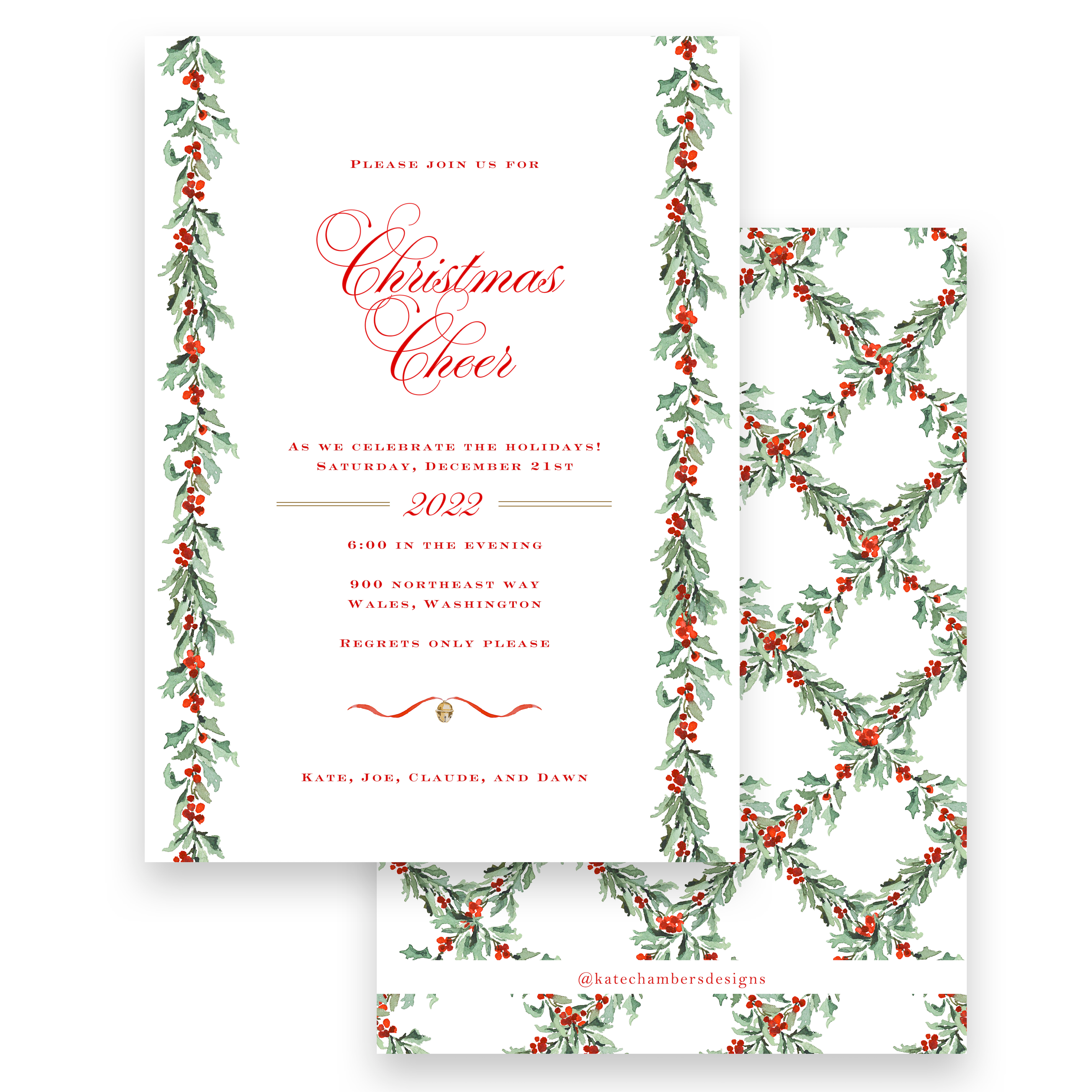 Watercolor Red Berry Pine Garland Holiday Invitation