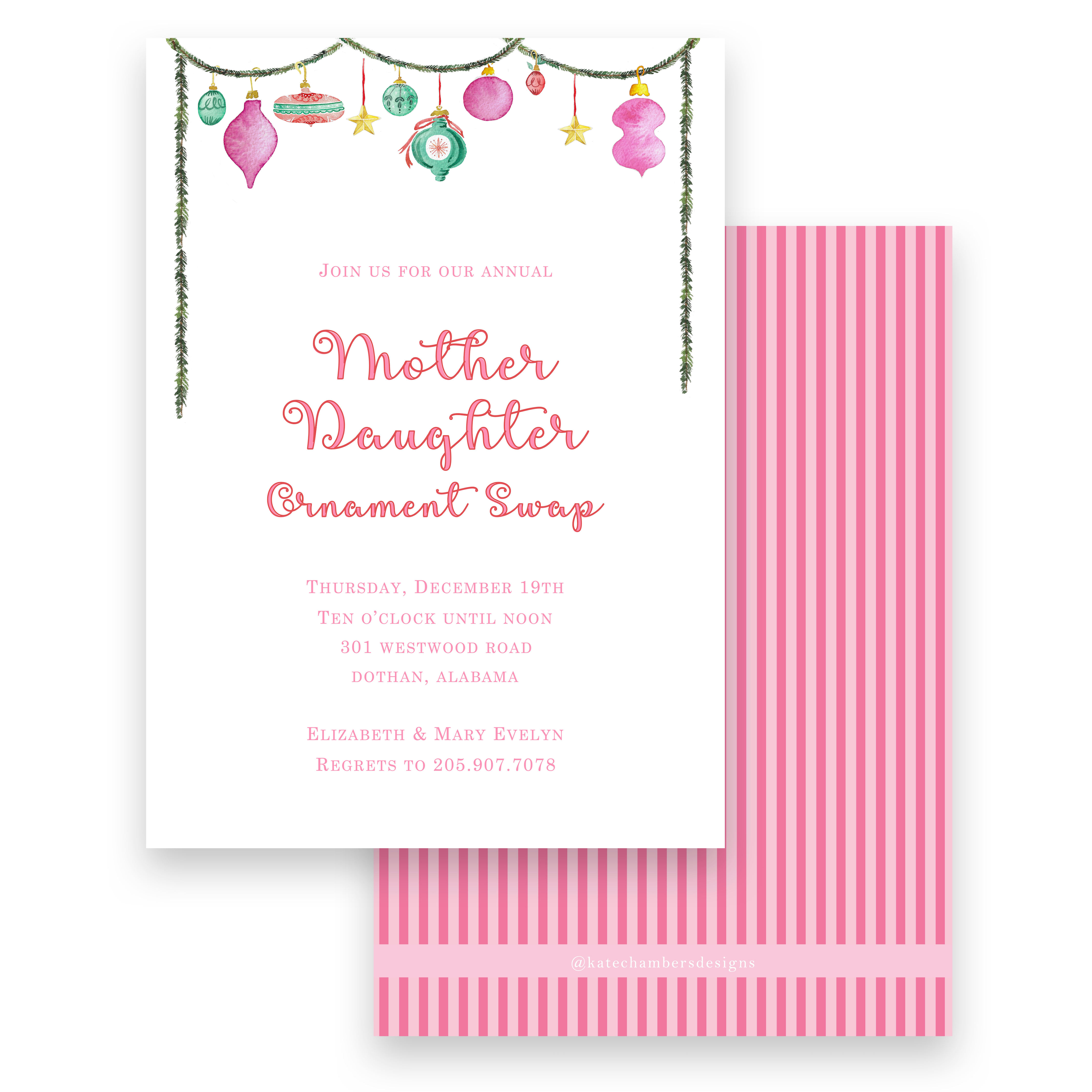 Watercolor Red Ribbon with Peach Berry Pine Garland Holiday Invitation