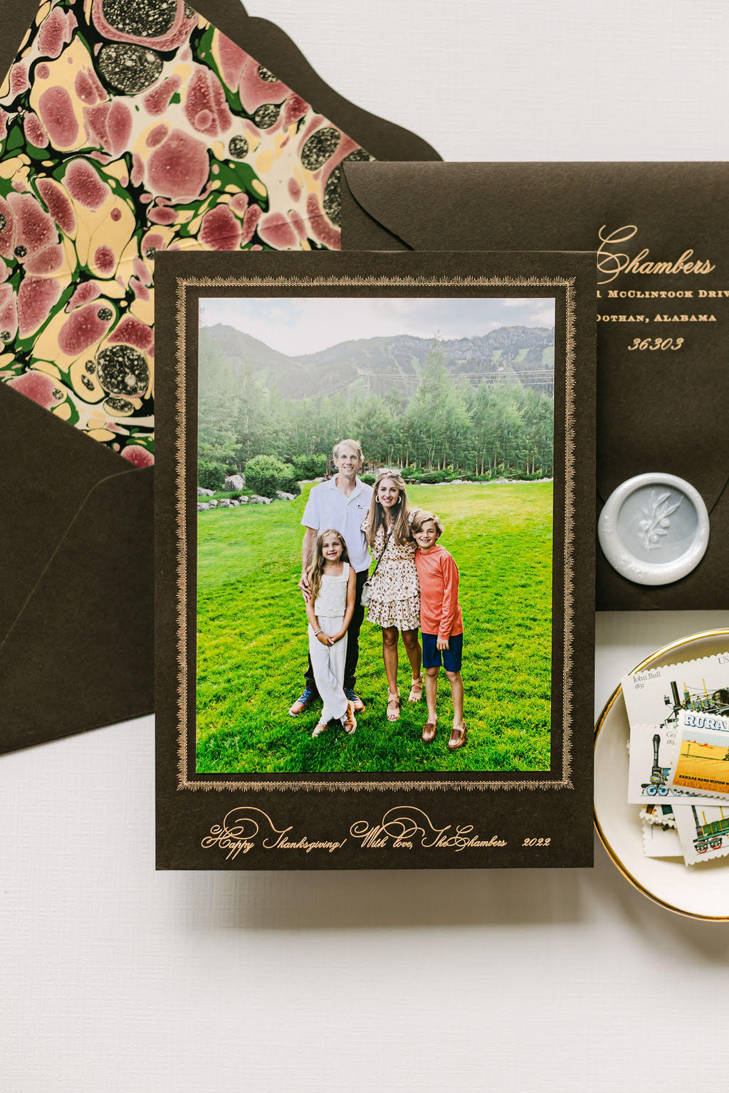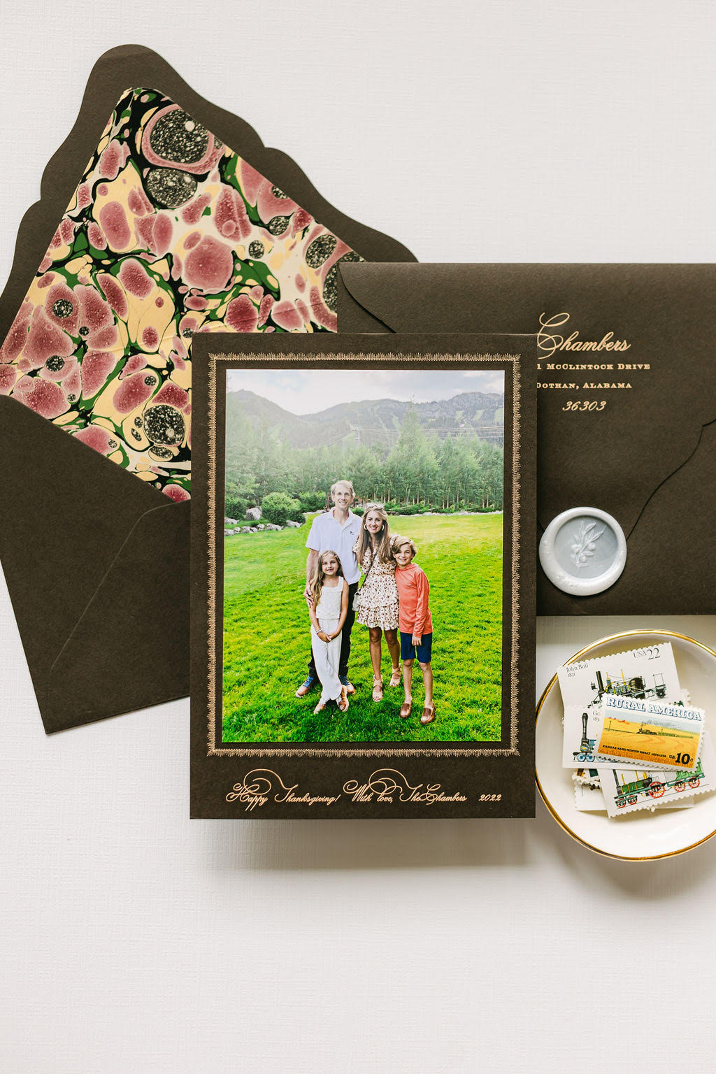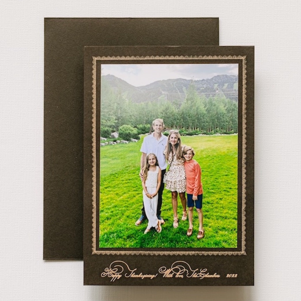 Engraved Custom Holiday Christmas Card (Bitter Chocolate & Apricot Ink)