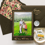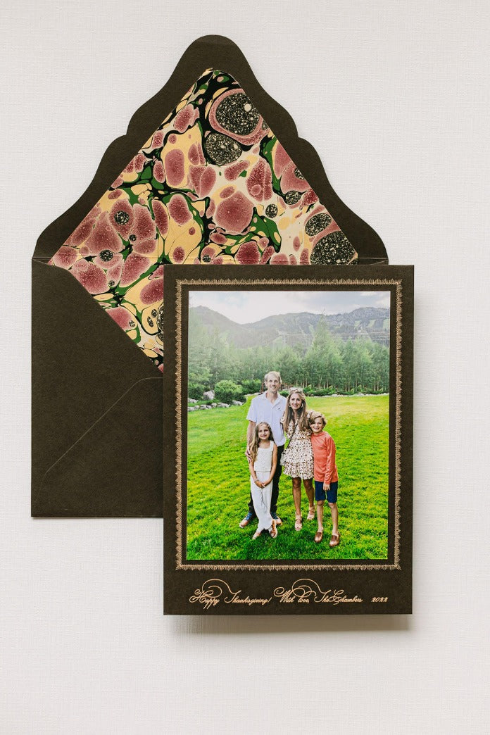 • The marbled envelope liner pictured  is an upgrade feature; clients can purchase this liner for $3.50/ liner through the upgrade page.  Alternatively, a standard liner can be purchase for $1/ liner.  Envelopes will be lined by Kate Chambers Designs.