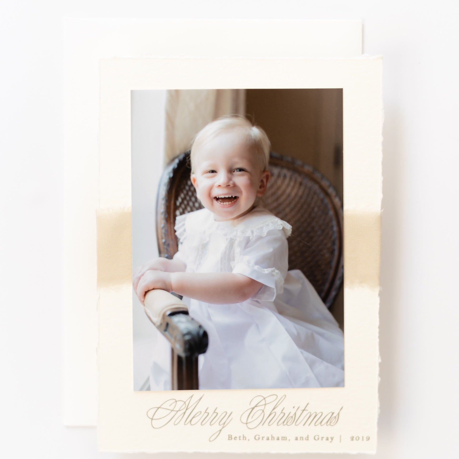Deckled Edge Letterpress Photo Attach Ribbon Holiday Card