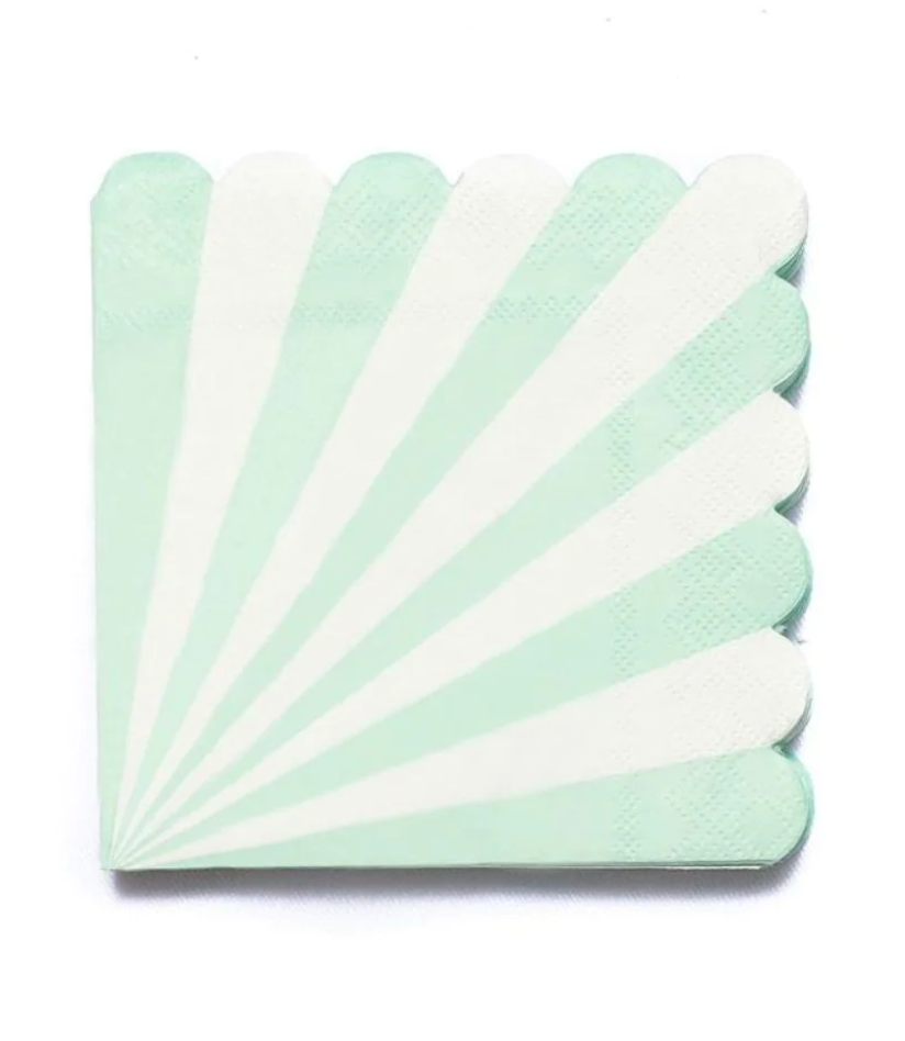 These mint and white striped napkins will complement any party color theme. The scalloped border adds a really stylish effect too.