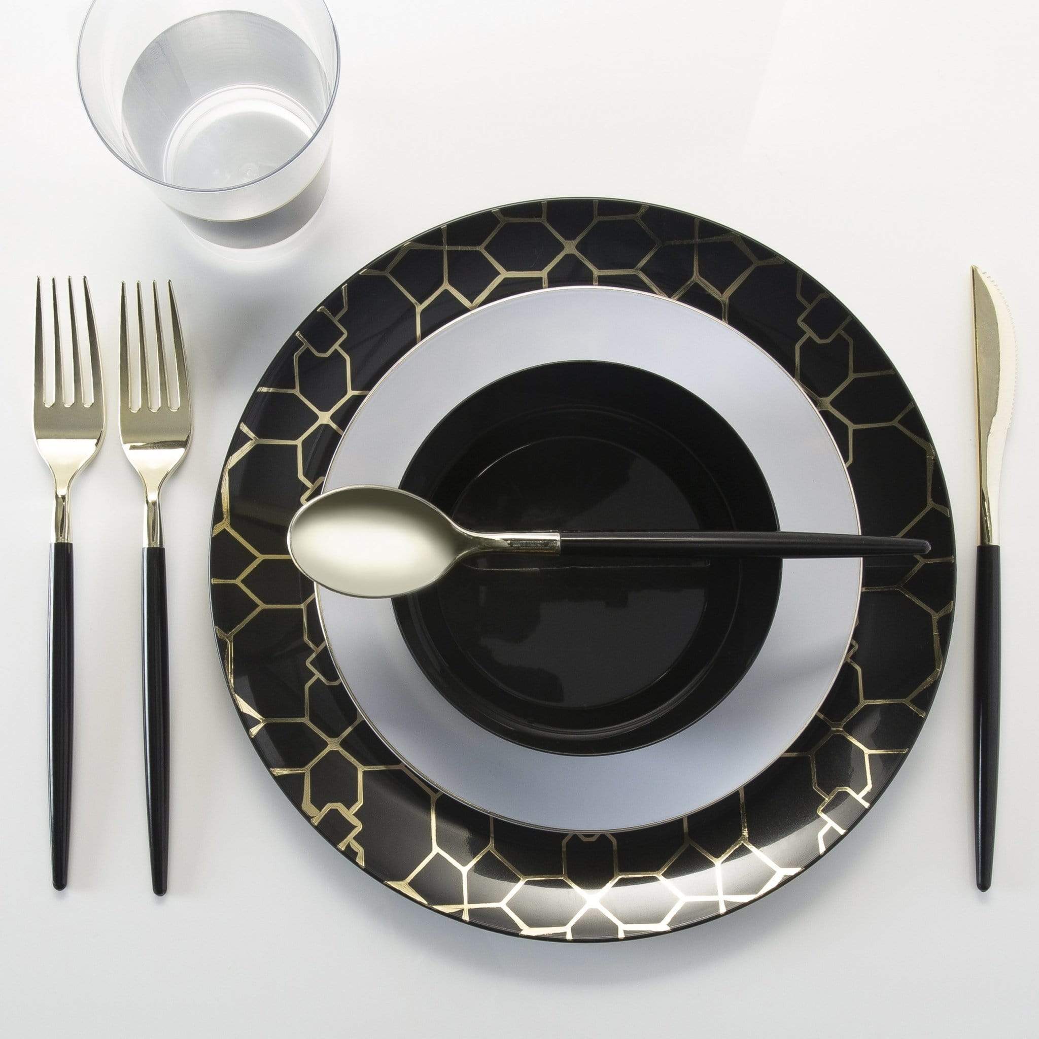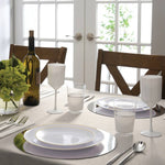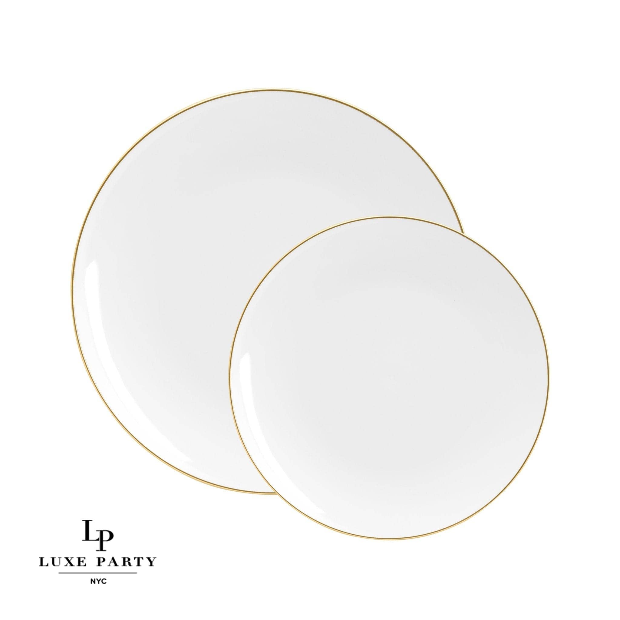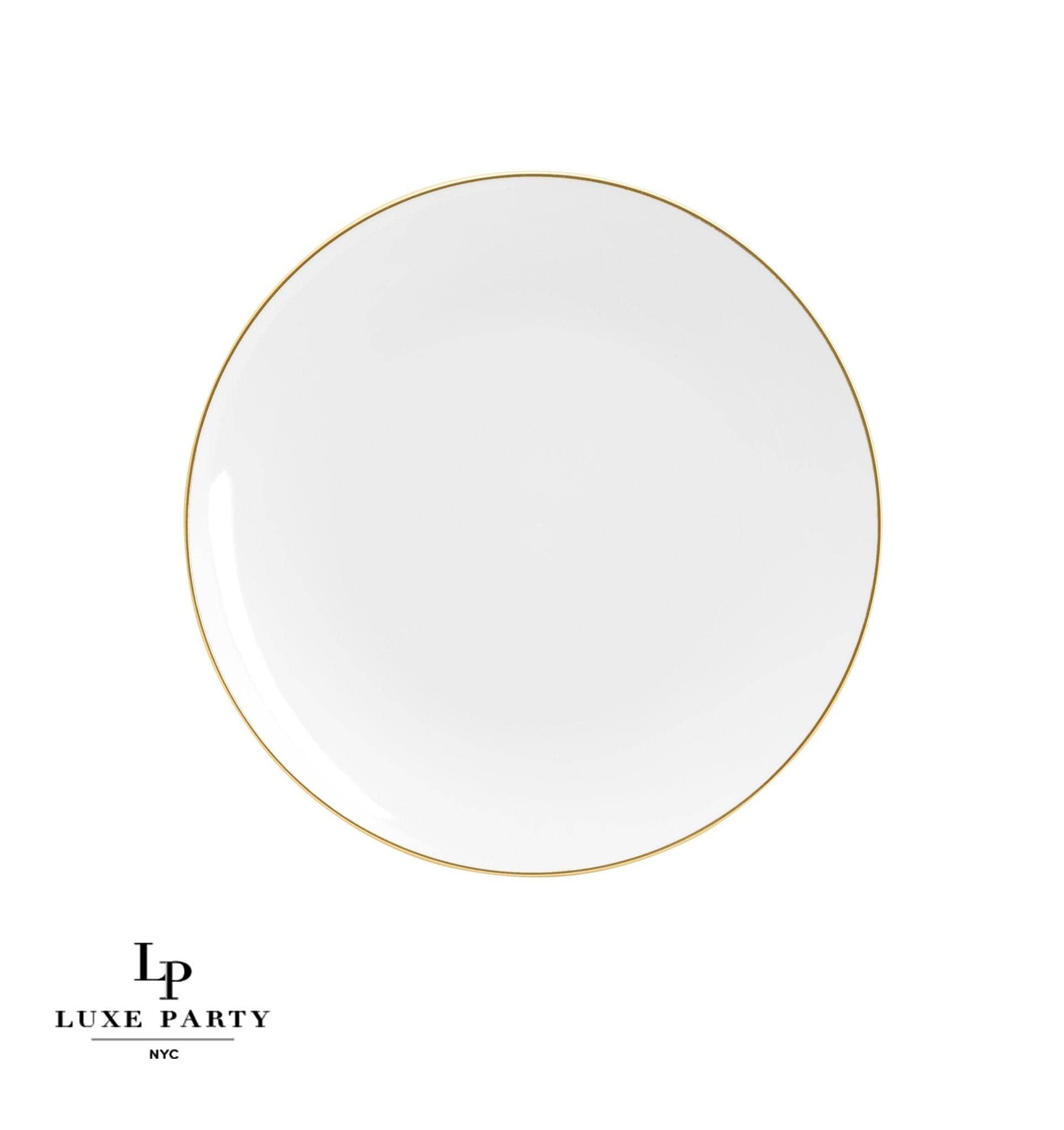 Round | Gold Accent | White • Gold Product Details Part Number: P-LX-1007-G-WHITE Available Sizes: 7.5" and 10.25"  Use: Salad • Appetizer • Dessert • Dinner Color: Gold • White Pattern: Round • Metallic Accent Material: Premium Plastic  Care and Maintenance Care: Hand Wash • Not Microwavable • BPA Free