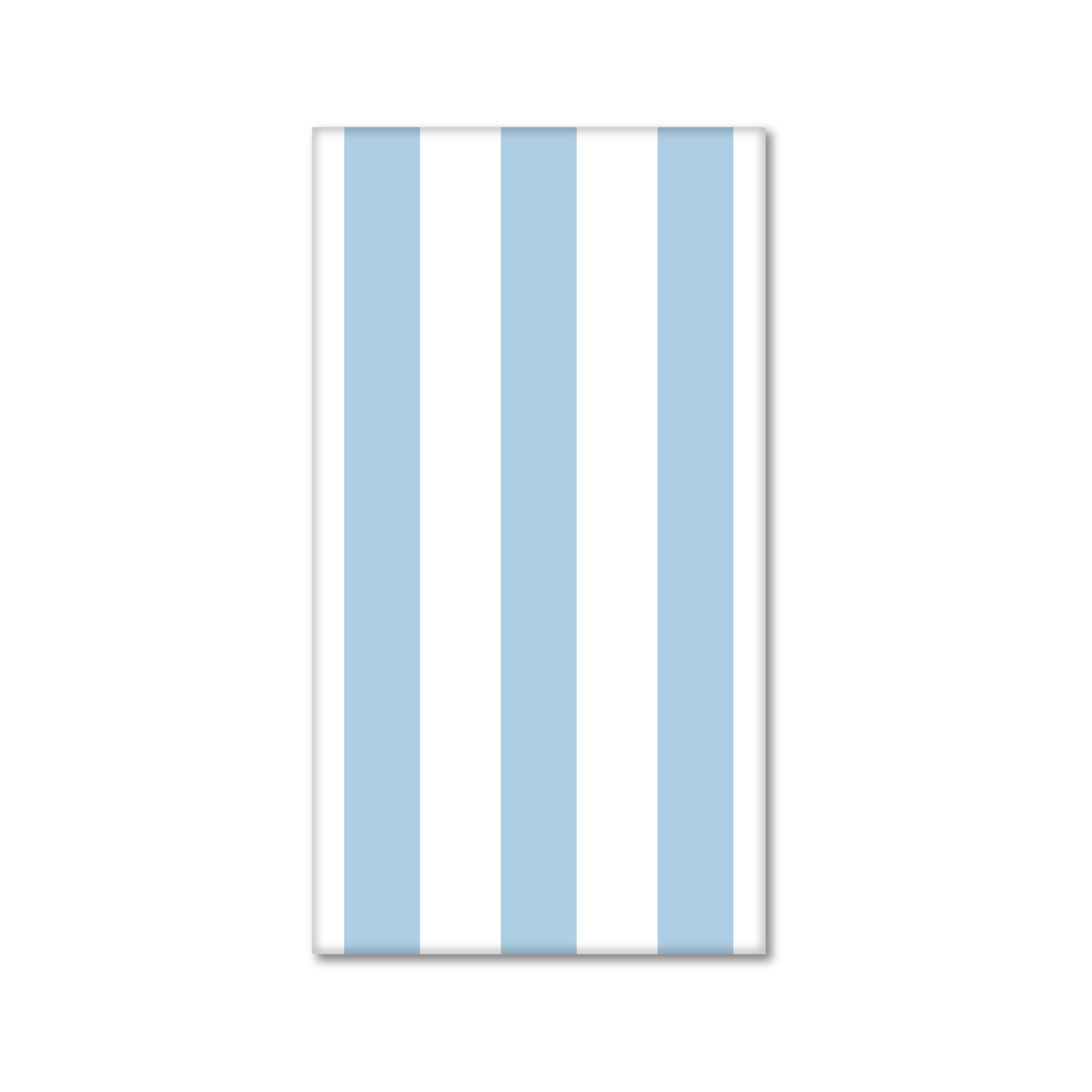Bonjour Fete Sky Blue Cabana Stripe Guest Towels. They are FSC-certified and made using environmentally-conscious raw materials, which ensures they are both biodegradable and compostable. Napkins bring eco-friendly style and convenience to your tabletop. > Triple-ply material offers convenience and durability > Printed in Germany using non-toxic, water-based inks > 15 light blue guest towel napkins per pack > 4.25" x 7.75", 12.75" x 15.5" when open