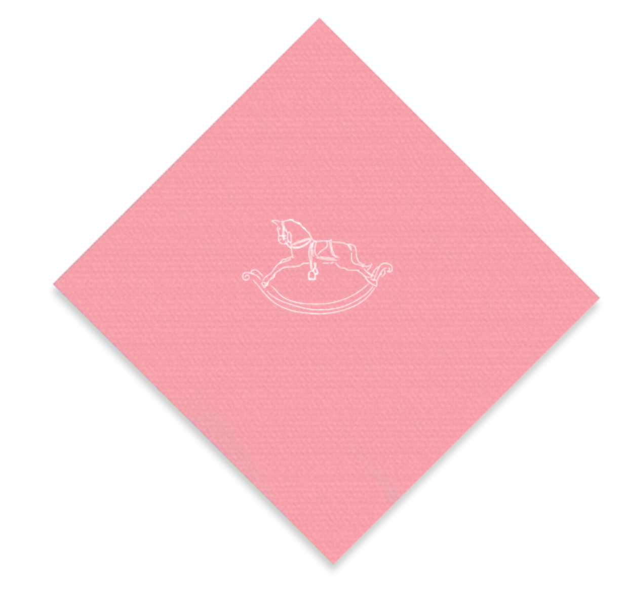This sweet outlined rocking horse illustration is available in multiple colors.  Elegance napkins are a high-quality disposable napkin designed to provide a luxurious, fabric-like feel, mimicking linen or cloth. The napkin measures 5"x5" and is perfect for cocktail-sized appetizers. Enjoy festivities with style and sophistication.