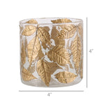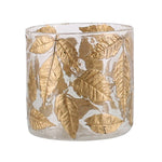 Earthen materials appropriated from nature are forever conserved in our Enamel Hurricane Collection. Gold leaves are enameled onto simple glass silhouettes presenting an intriguing luminary for a candle or flower vessel.