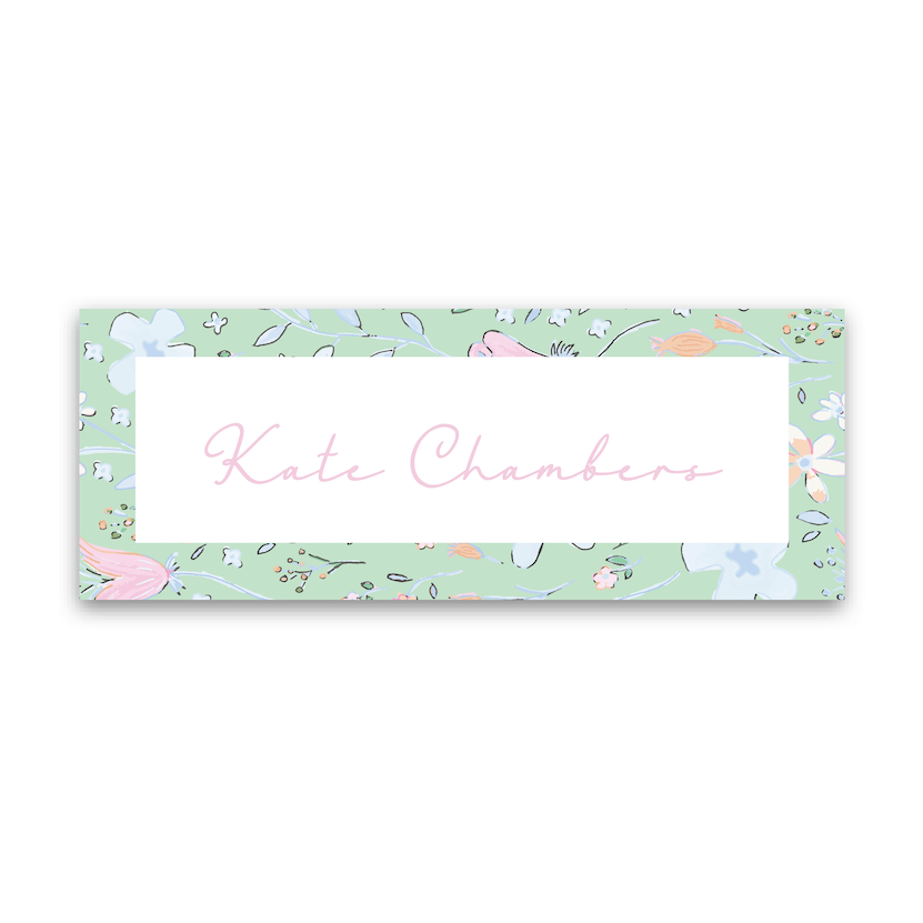 Girl's Watercolor Mint Floral Vinyl Sticker Label