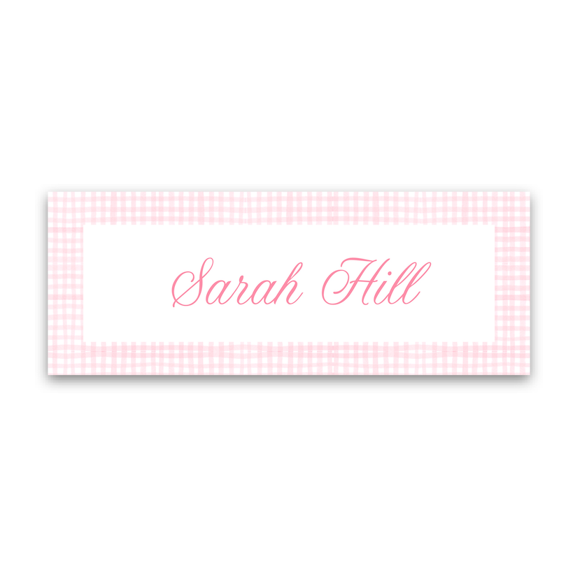 Girl's Pink Gingham Border Vinyl Sticker Label