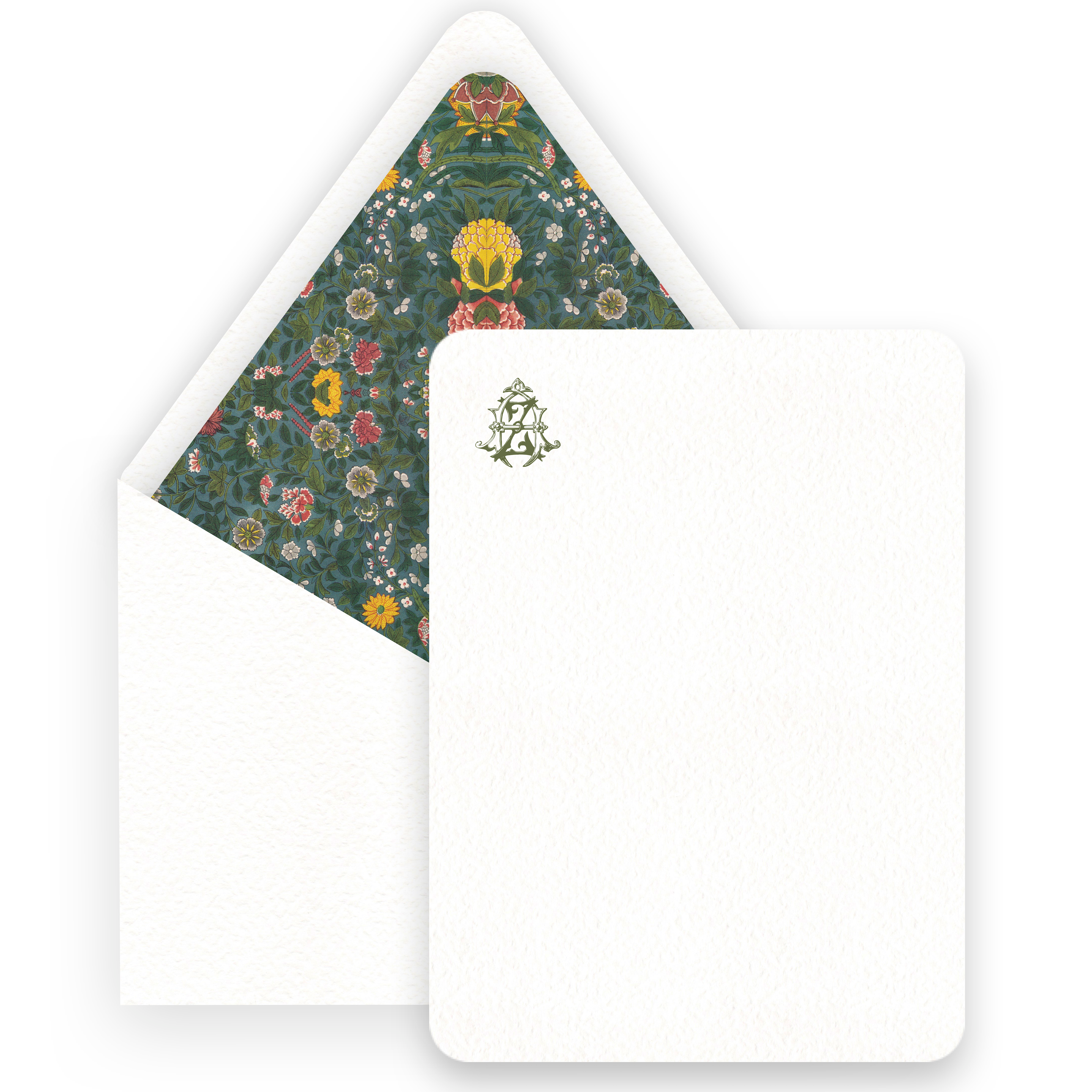 Floral Forest Green Florentine Style Lined Women's Stationery
