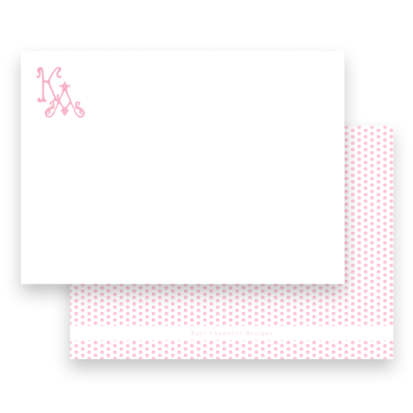 Watercolor Pink Dotted Monogram Lined Women's Stationery