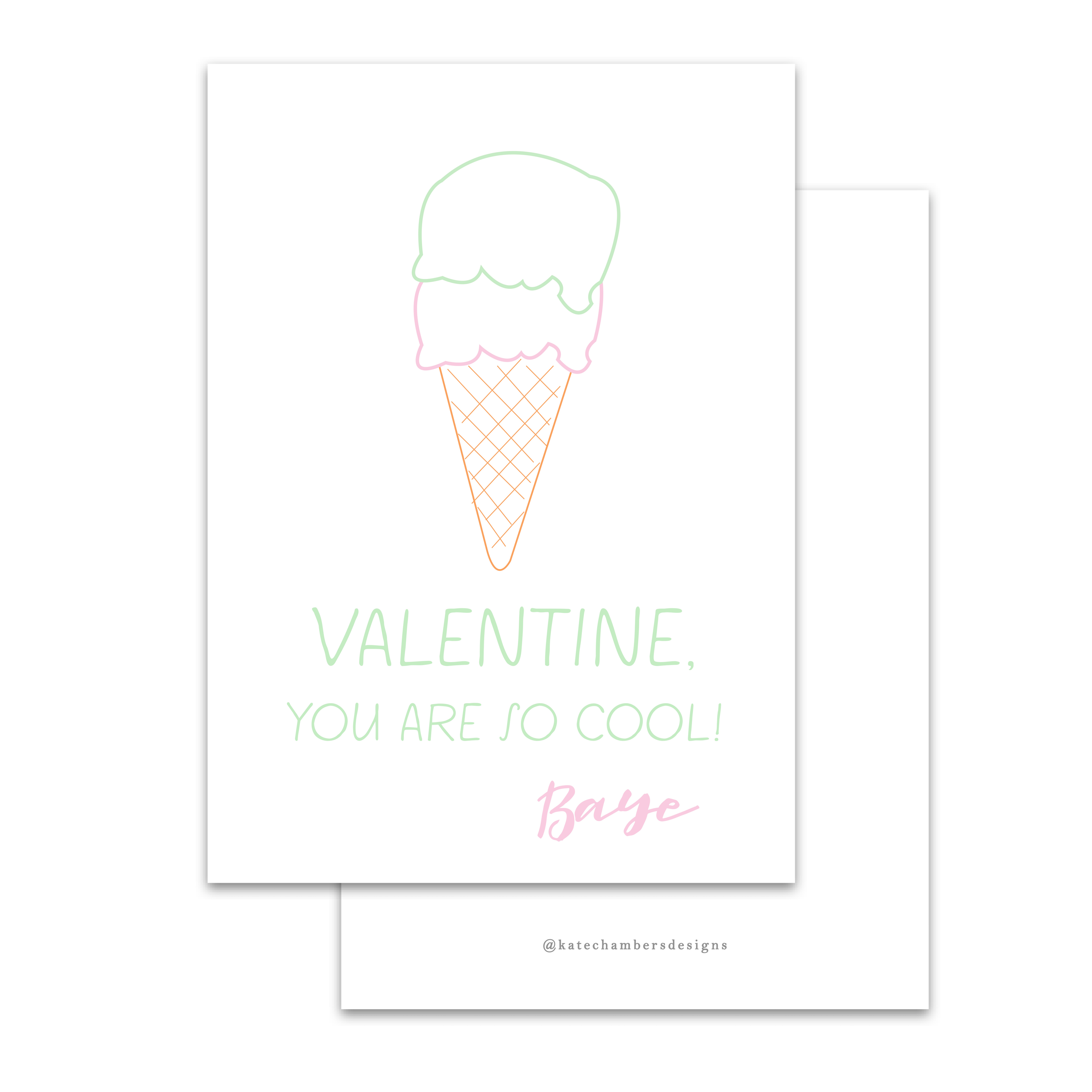 2 Scoop Ice Cream Cone Valentine's Day Card