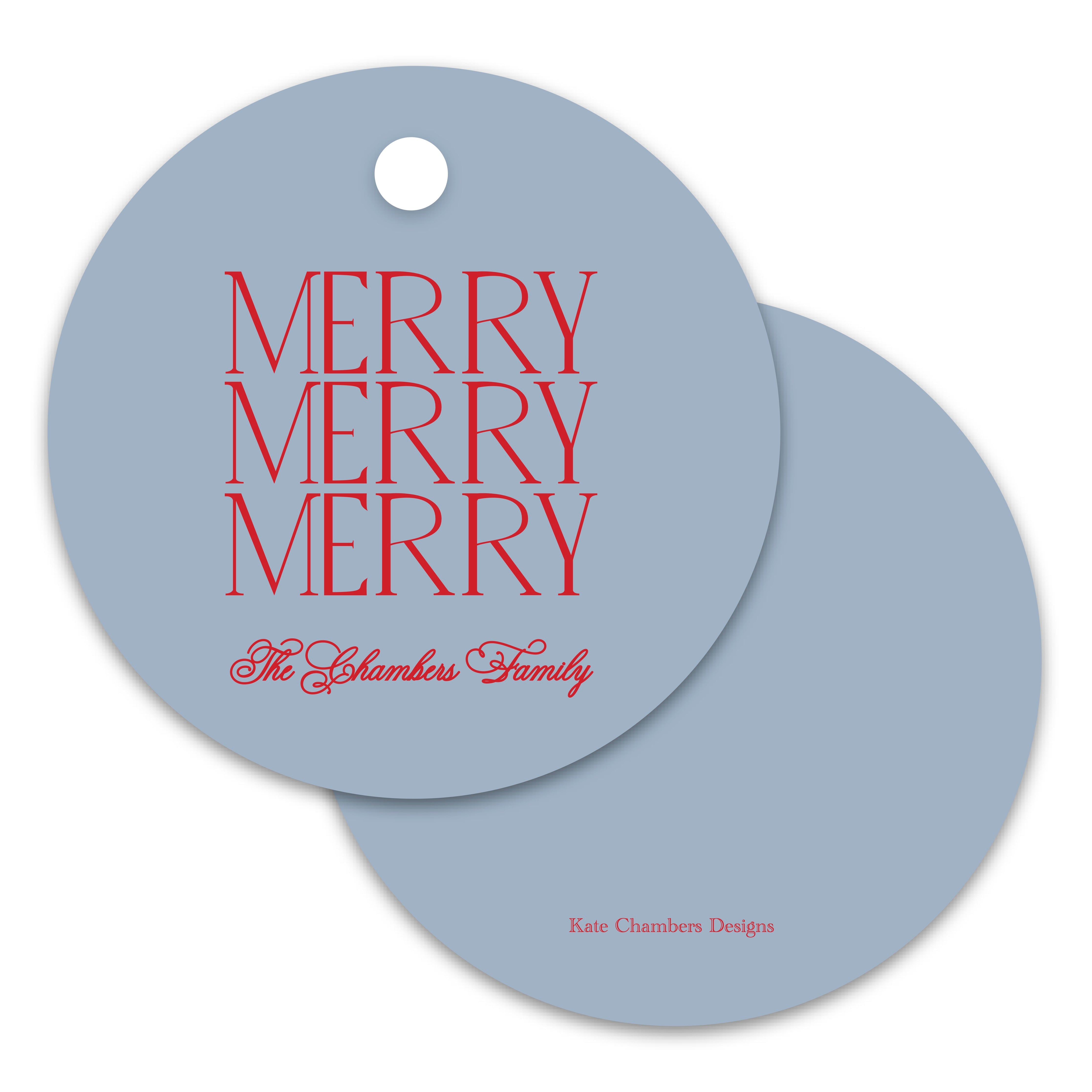 Blue and Red "Merry, Merry, Merry" Simple Round Holiday Gift Tag
