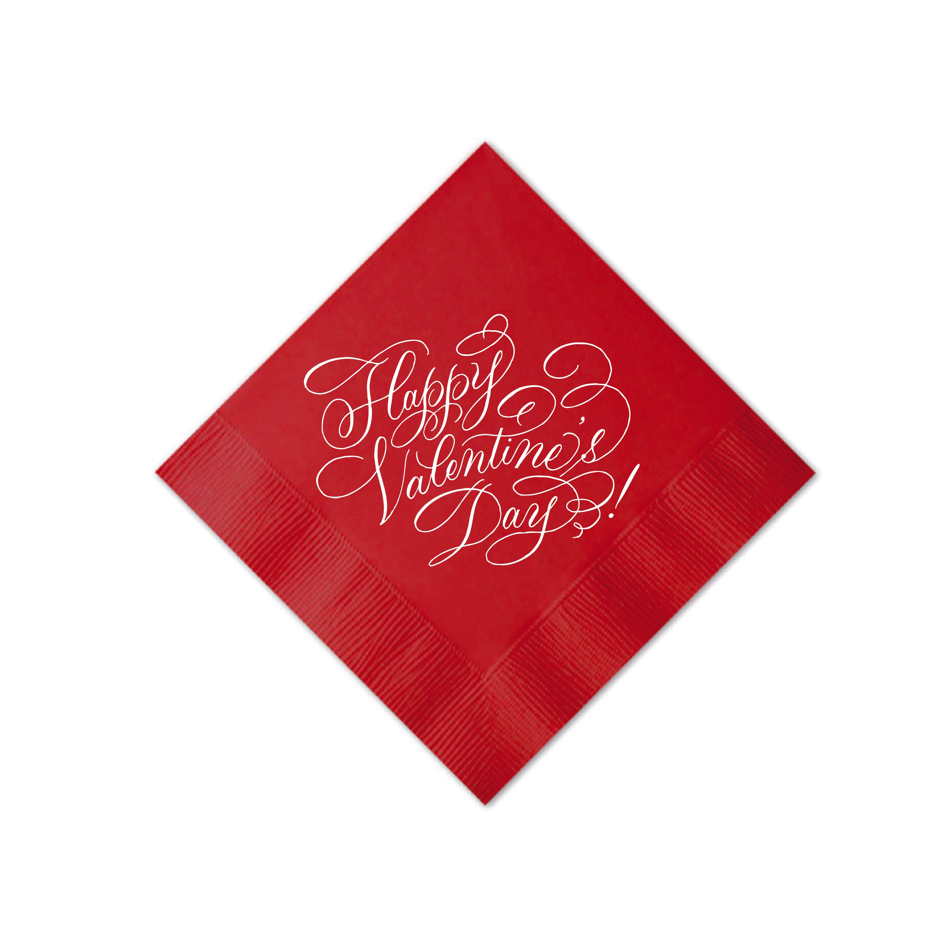 White foil on red Happy Valentine's Day custom calligraphy Cocktail Napkins, set of 20
