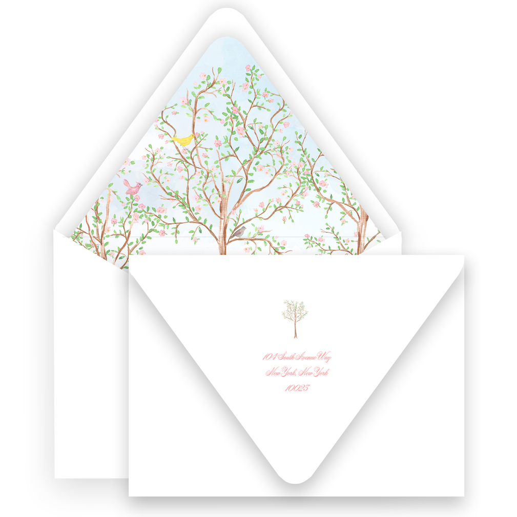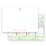 Watercolor Cherry Blossom Garden Scene Landscape Stationery