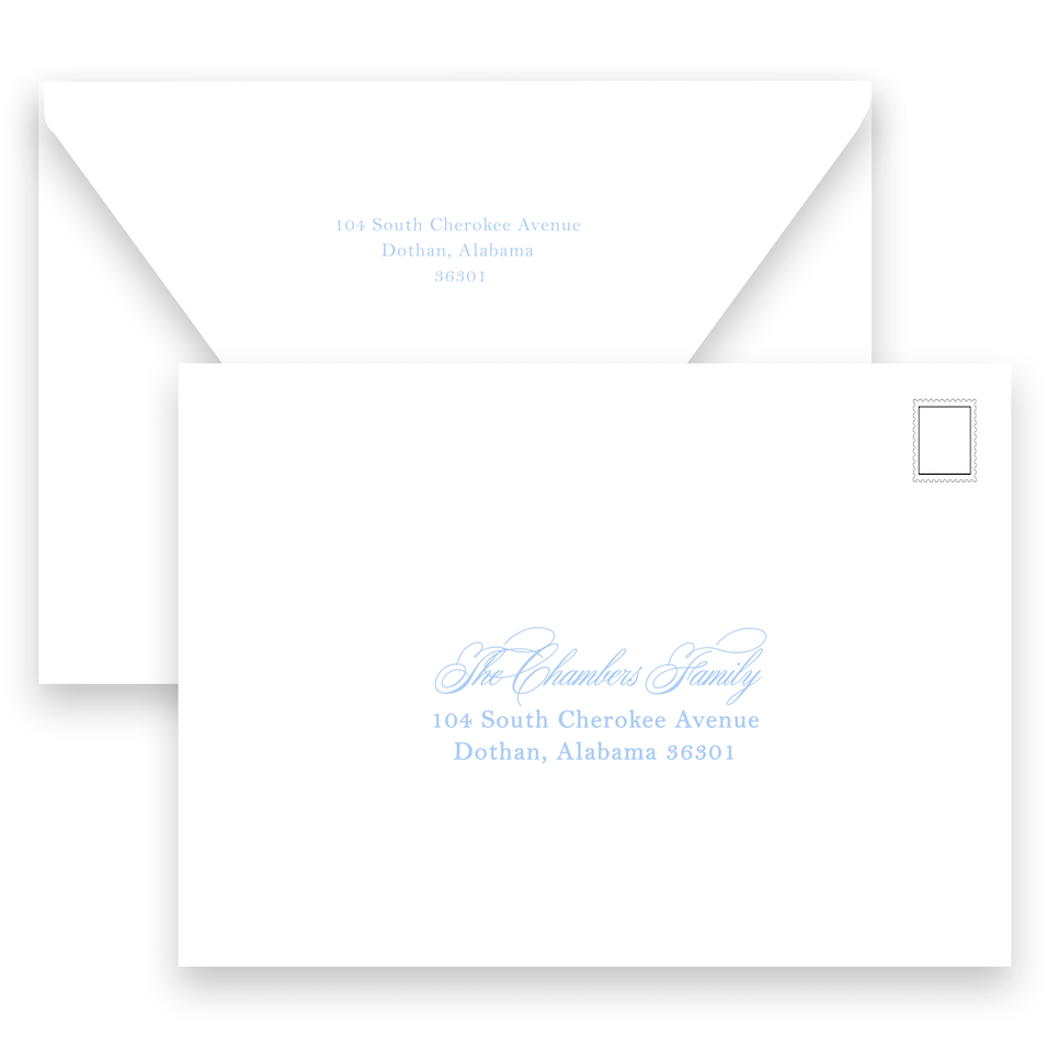 • Envelopes are included with your purchase and will match the paper of your printed product; euro flap envelopes, coordinating liners, gift tags, return and front addressing are available for purchase