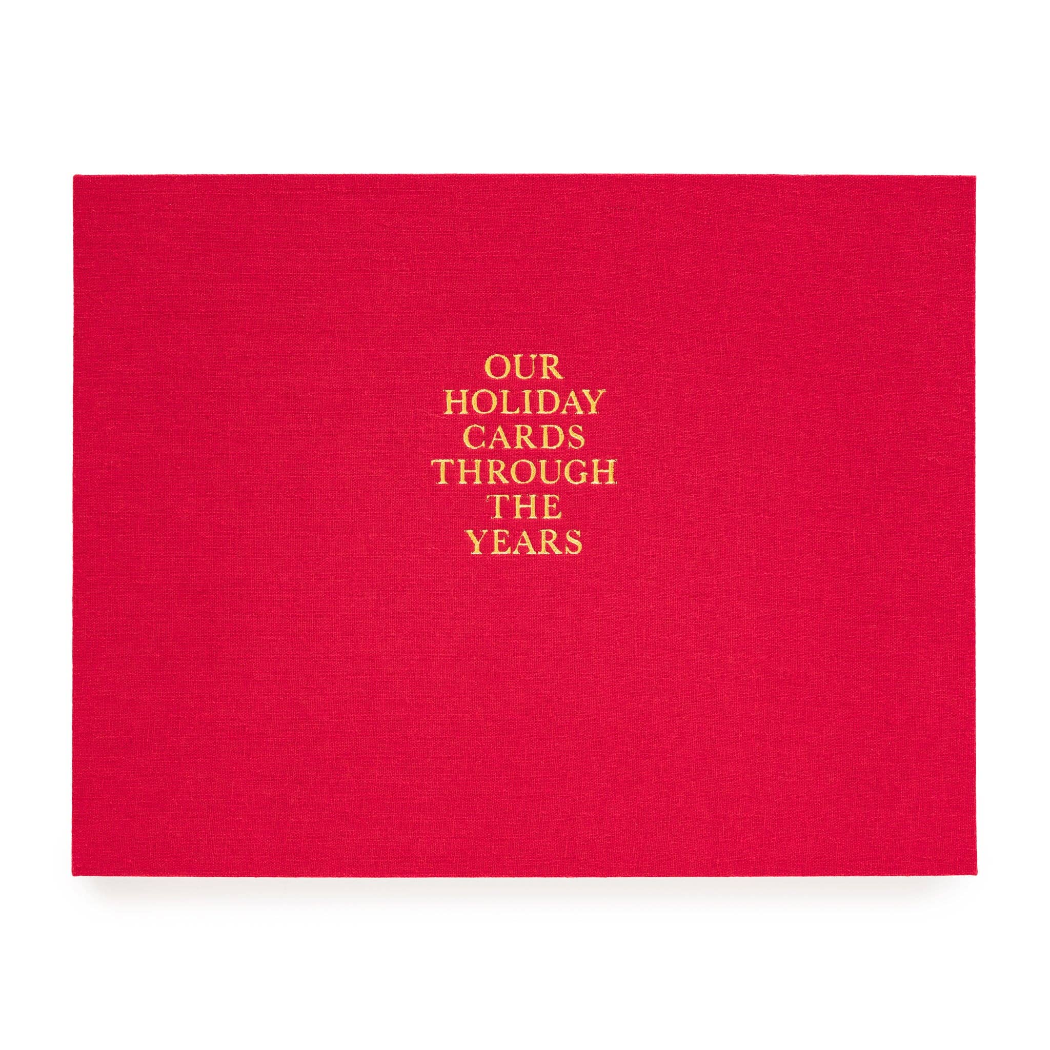 A classic, bound album that stores your personal holiday cards year after year for a treasured keepsake the whole family will adore. A flax linen cover with gold detailing adds the perfect touch of holiday style. * Holiday Red Fabric Bound Cover * Concealed Spiral * 20 Blank Pages * 10.375 x 13.375 Inch Cover * 10 x 12 Inch Pages * 50 Adhesive Tape Strips * ORG47