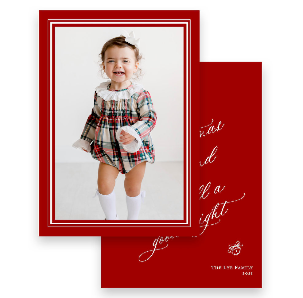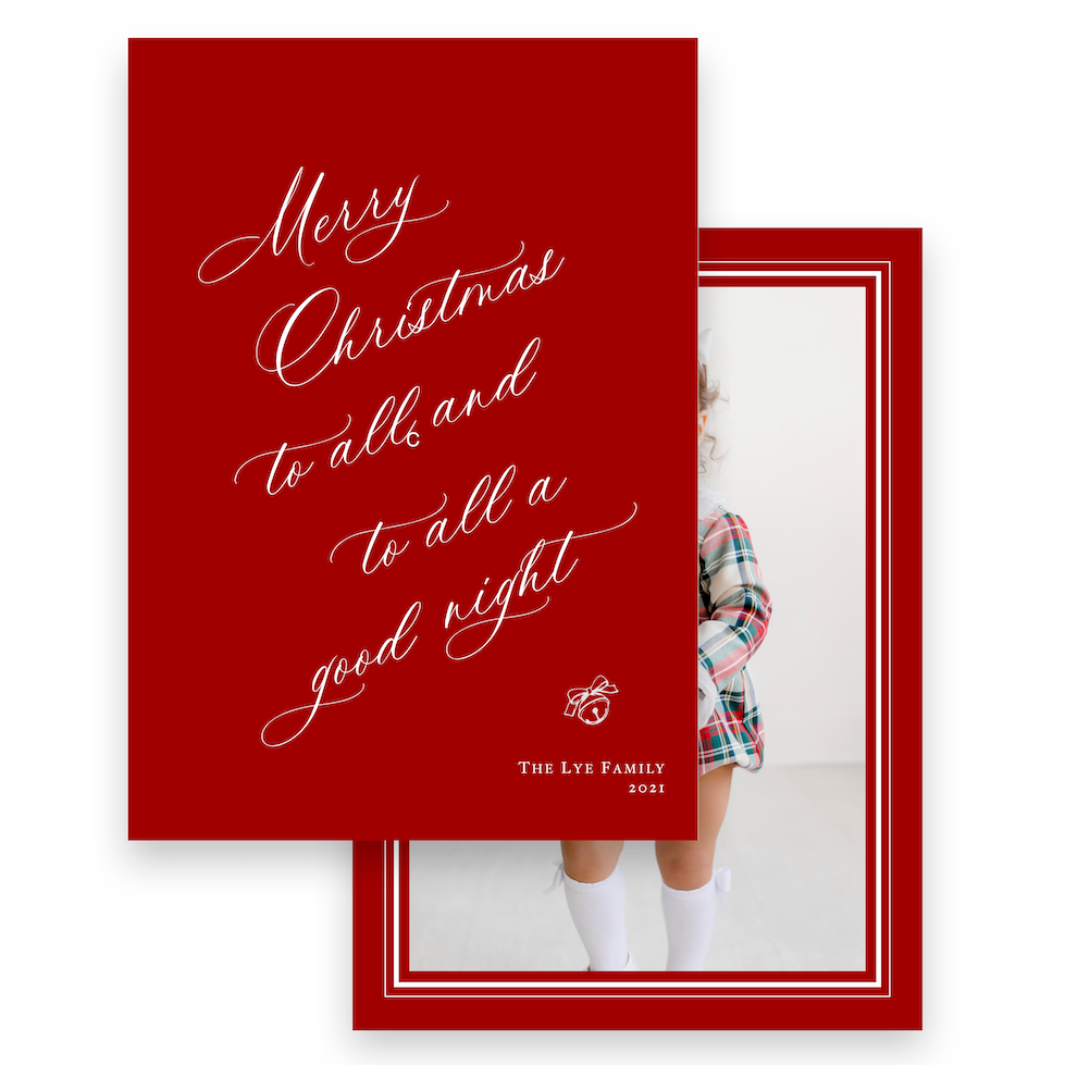 Red "Merry Christmas to All and to All a Good Night" Portrait Full Picture Holiday Card