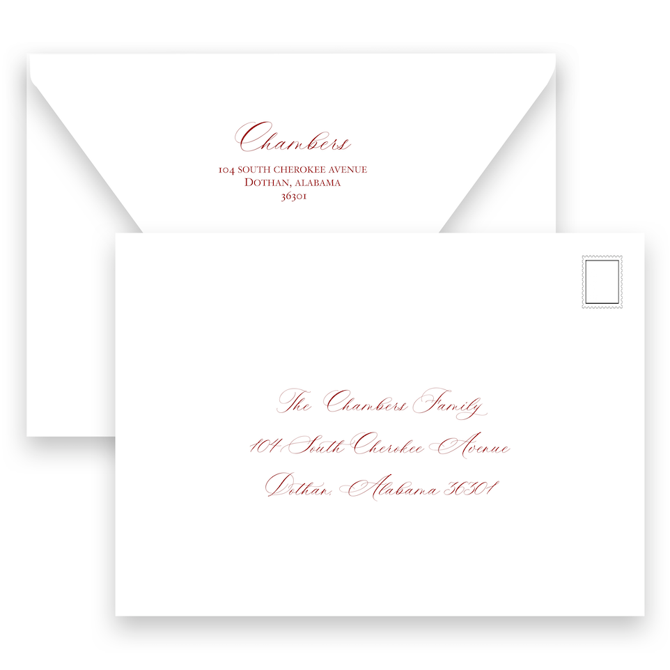 • Envelopes are included with your purchase and will match the paper of your printed product; euro flap envelopes, coordinating liners, gift tags, return and front addressing are available for purchase