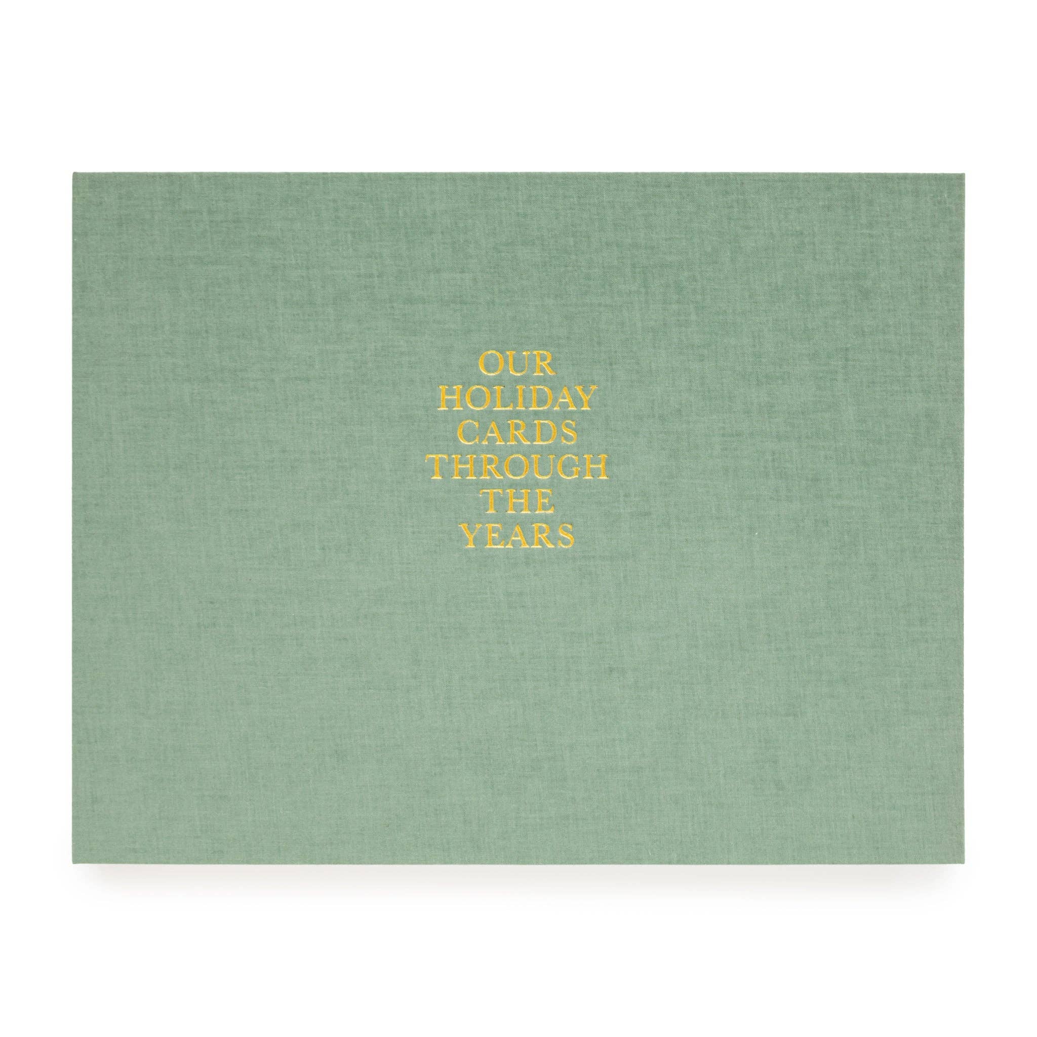 A classic, bound album that stores your personal holiday cards year after year for a treasured keepsake the whole family will adore. A flax linen cover with gold detailing adds the perfect touch of holiday style. * Sage Green Fabric Bound Cover * Concealed Spiral * 20 Blank Pages * 10.375 x 13.375 Inch Cover * 10 x 12 Inch Pages * 50 Adhesive Tape Strips * ORG48