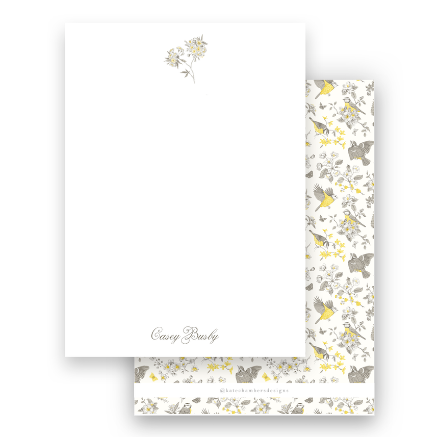 Vintage Yellow Bird Toile Lined Women's Stationery