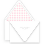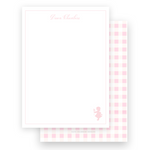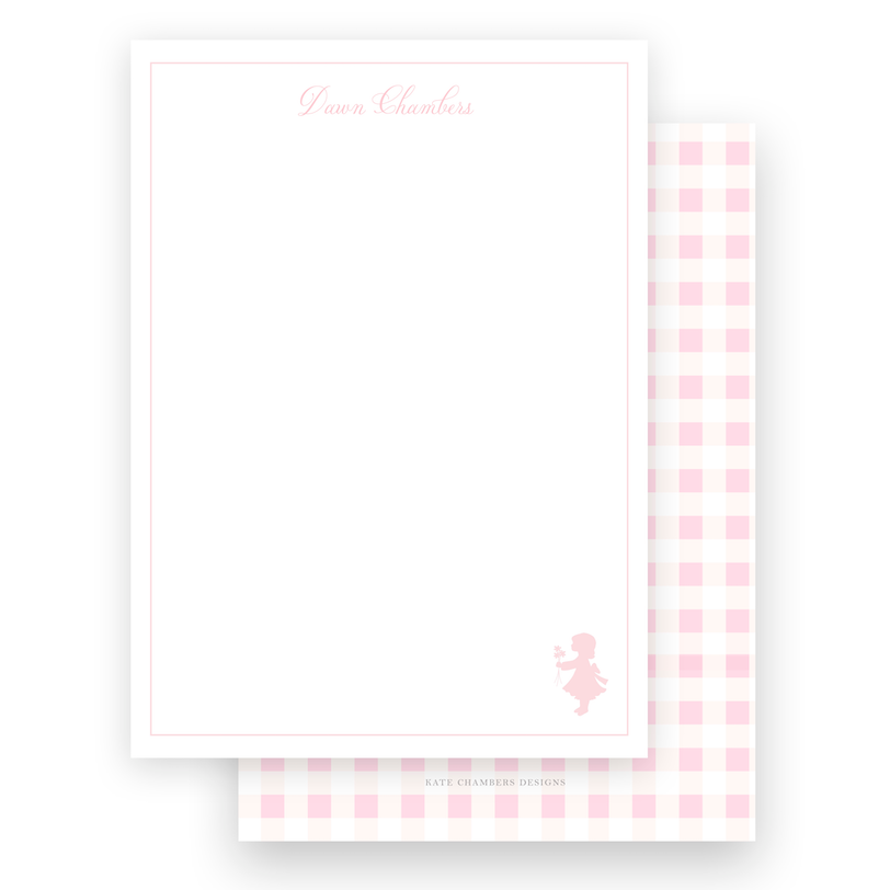 Pink Vintage Girl with Flowers Silhouette with Gingham Portrait Stationery